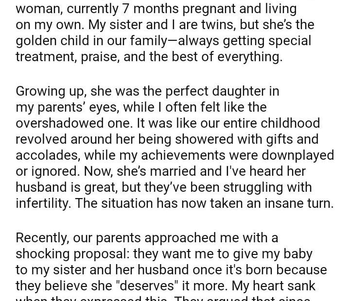 AITA for refusing to give my baby to my twin sister