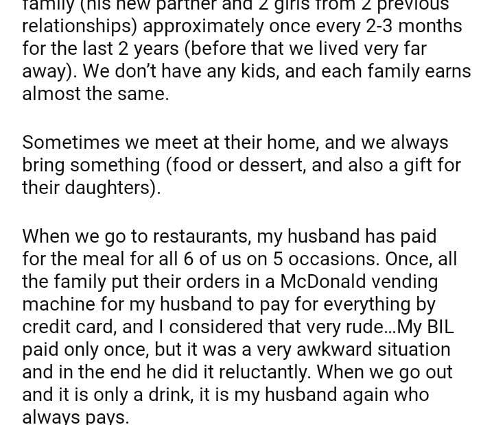 AITA BIL does not buy food for me?