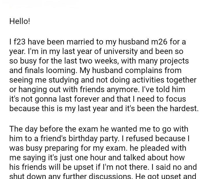 AITA for Asking My Husband to Cancel His Trip to Help Me