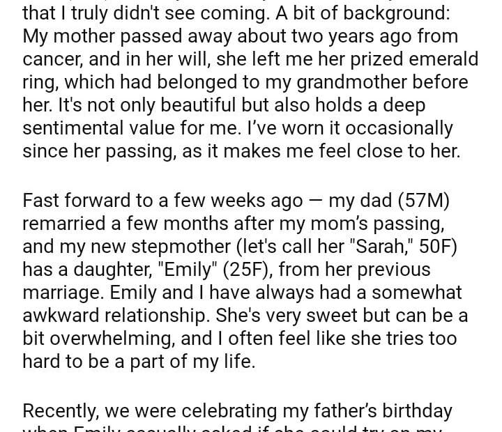 AITA For Refusing To Give My Stepsister My Mother’s Ring