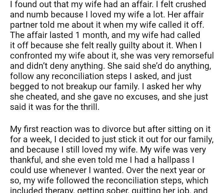 AITAH for wanting to use the hallpass my wife gave me 5 years ago