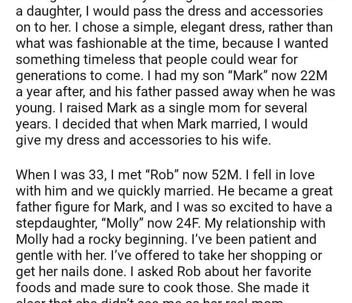 AITA for giving my wedding dress to my future daughter-in-law instead of my stepdaughter?August 11, 2024August 11, 2024AITA