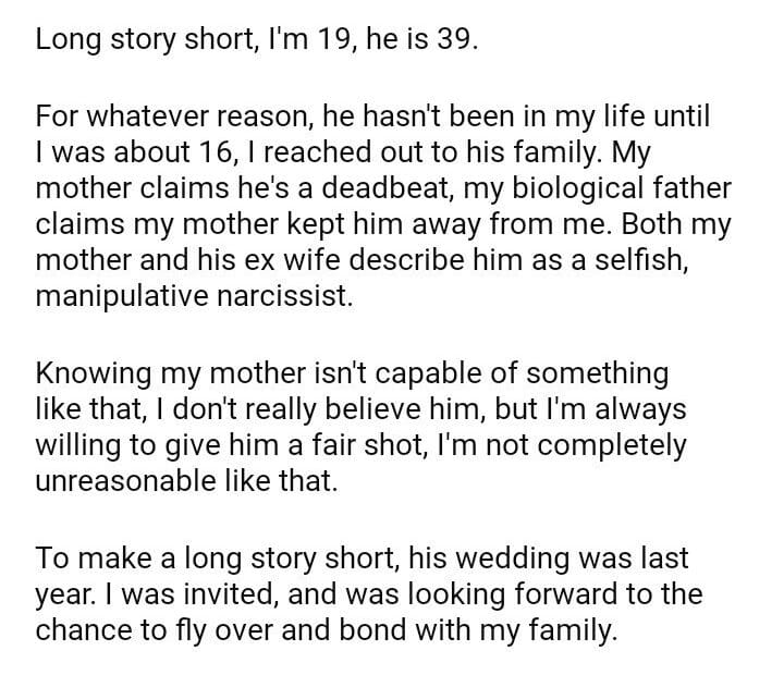 AITA for my father’s wedding due to his refusal to buy me a plane ticket?July 31, 2024July 31, 2024AITA