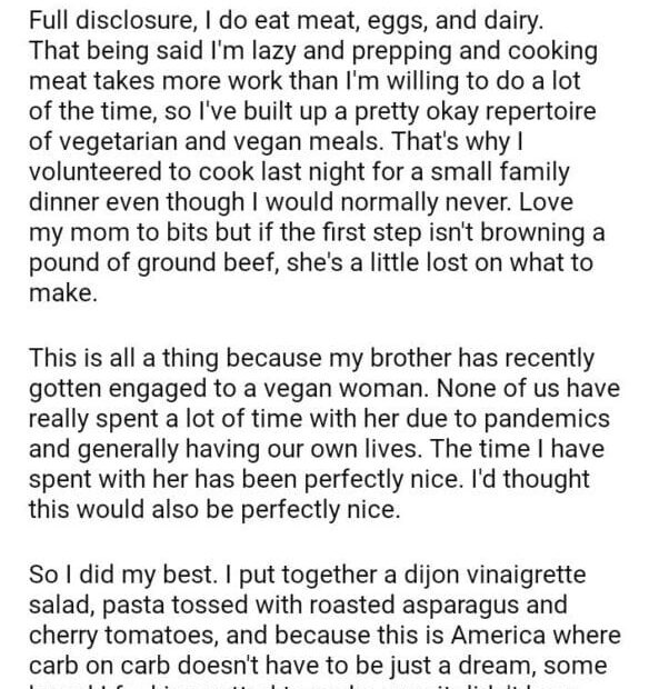 AITA for my brother’s vegan fiancee?