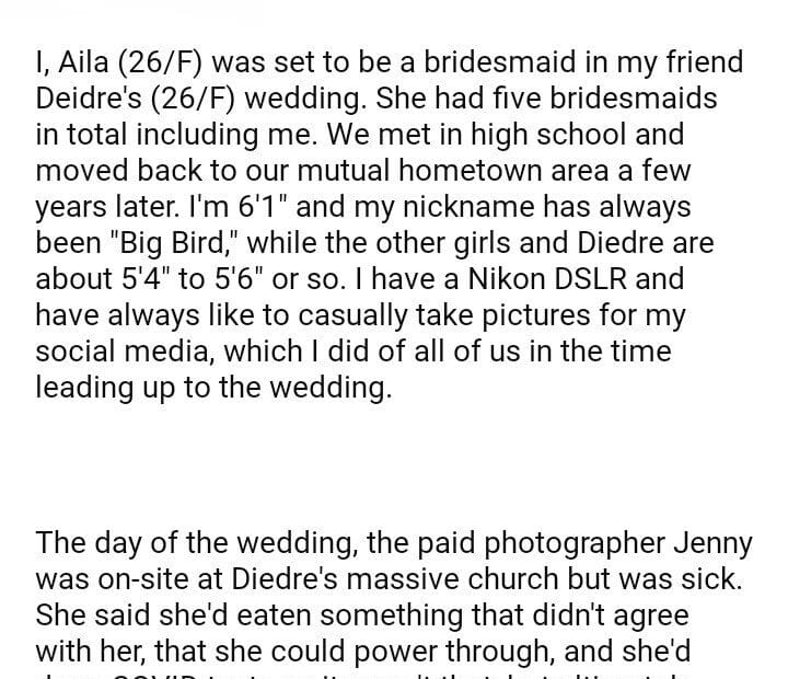 AITA for my friends wedding after she removed me as a bridesmaid