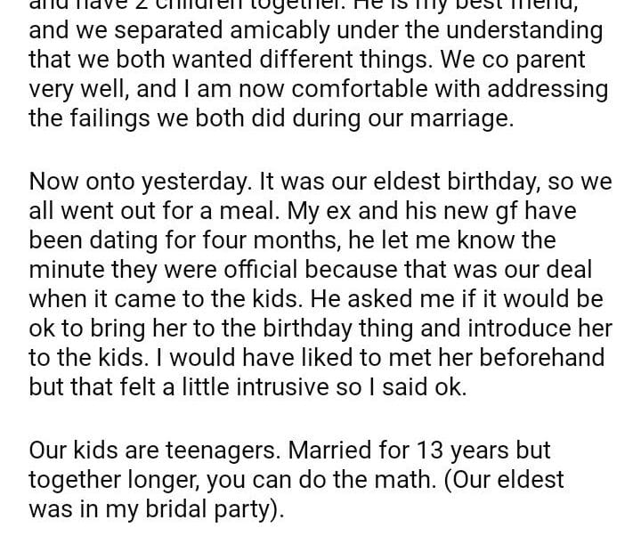 AITAH for telling my ex husbands new gf “I have no idea.”