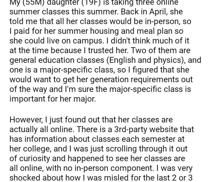 AITA for not paying for my daughter’s college housing and campus fees next yearJuly 1, 2024July 1, 2024AITA