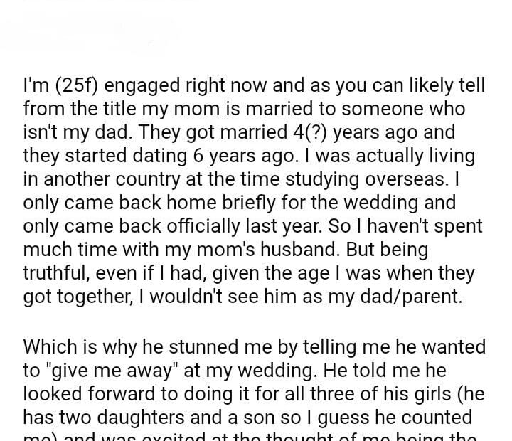 AITA for telling my mom’s husband I never considered asking him to walk me down the aisle?June 25, 2024June 25, 2024AITA