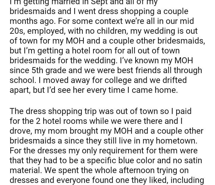 AITA for replacing my MOH in my wedding because she refused to buy her dress?June 23, 2024June 23, 2024AITA