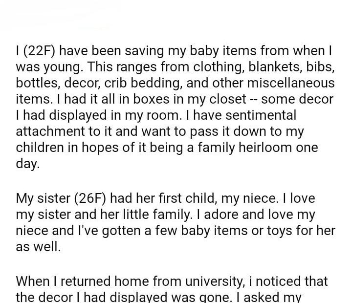 AITA for demanding my older sister to return my baby items she took from meJune 14, 2024June 14, 2024AITA