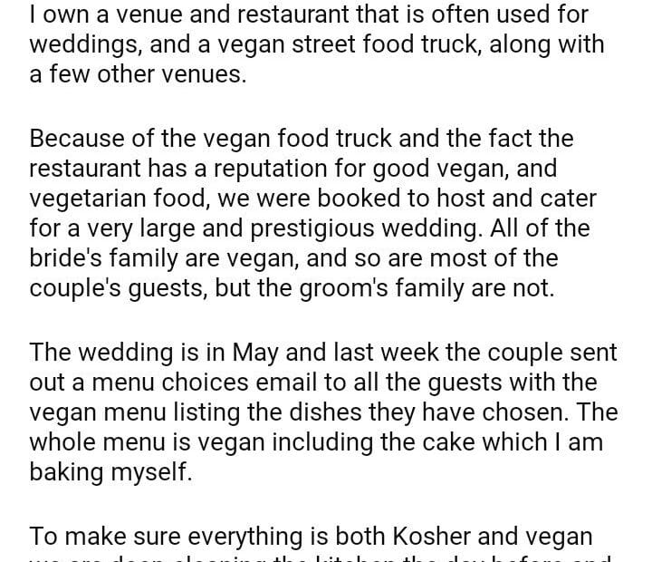 AITAH for not agreeing to serve non-vegan food at a vegan wedding?