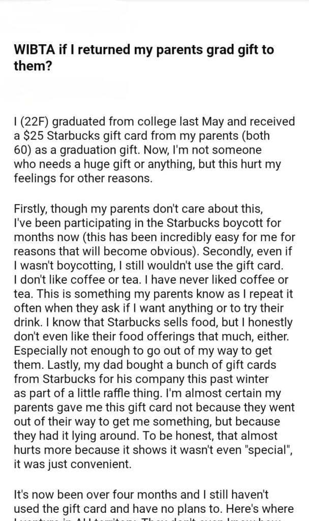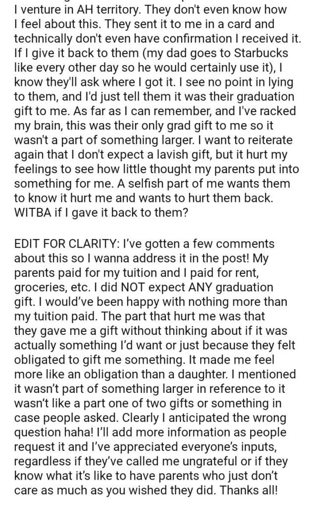 WIBTA for my parents grad gift