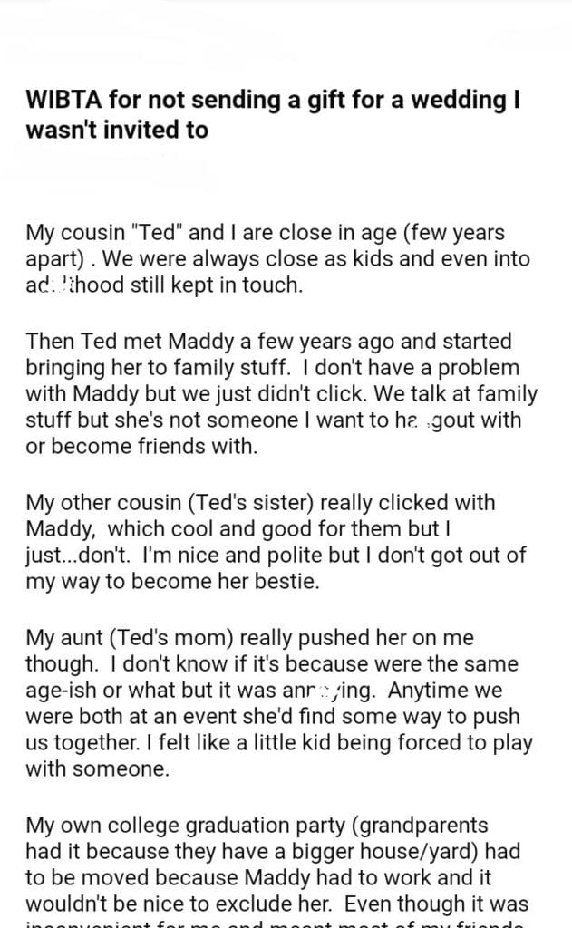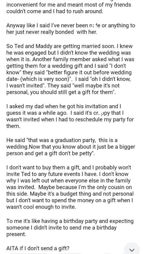 WIBTA for not sending a gift for a wedding I wasn’t invited to