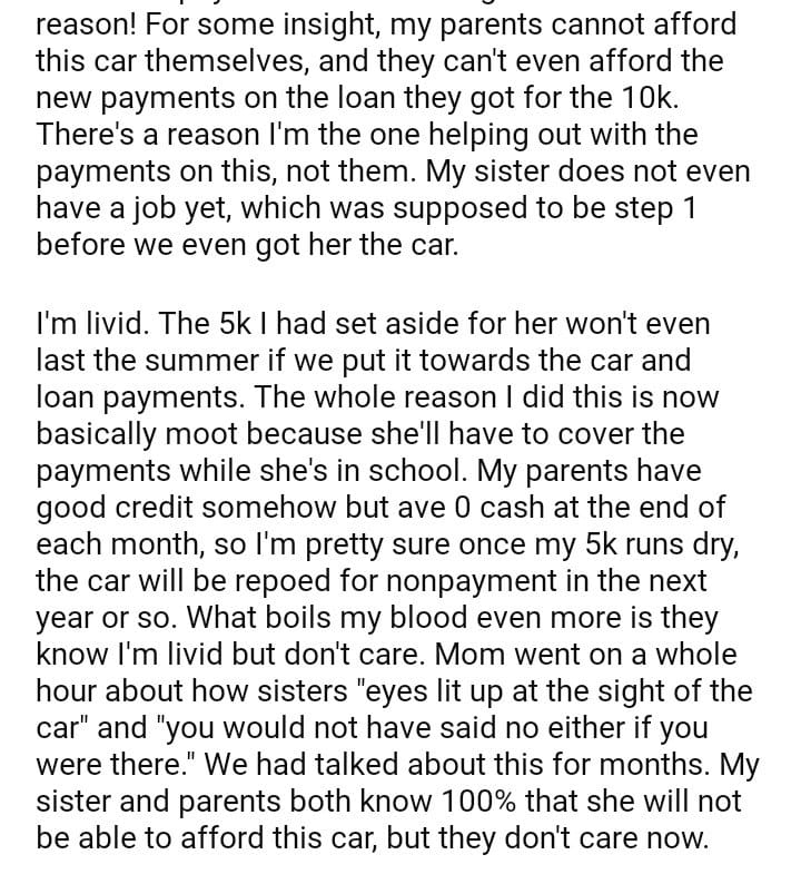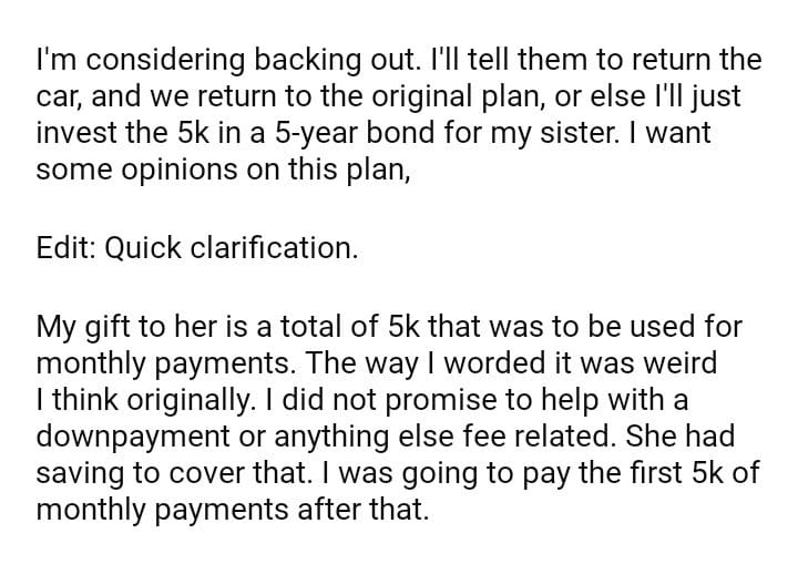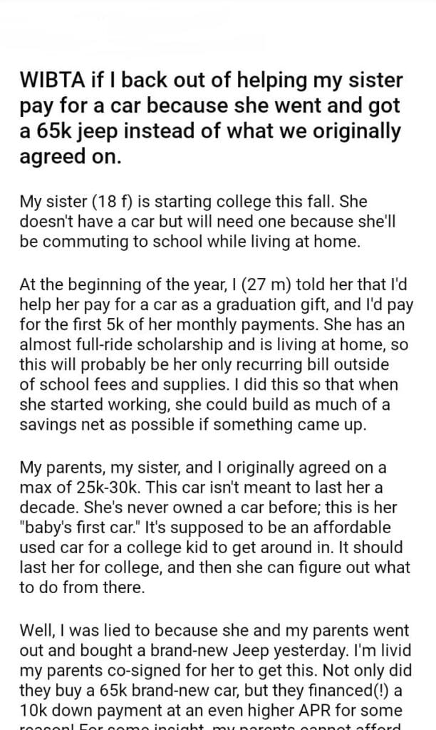 WIBTA if I back out of helping my sister pay for a car