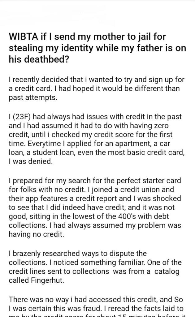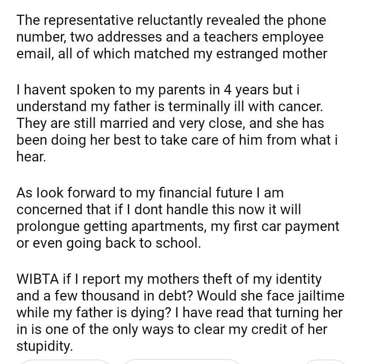 WIBTA if I send my mother for my identity