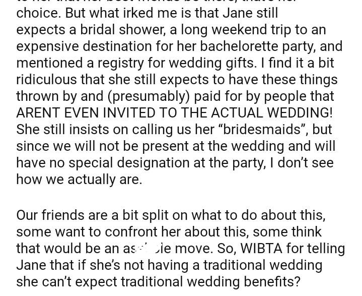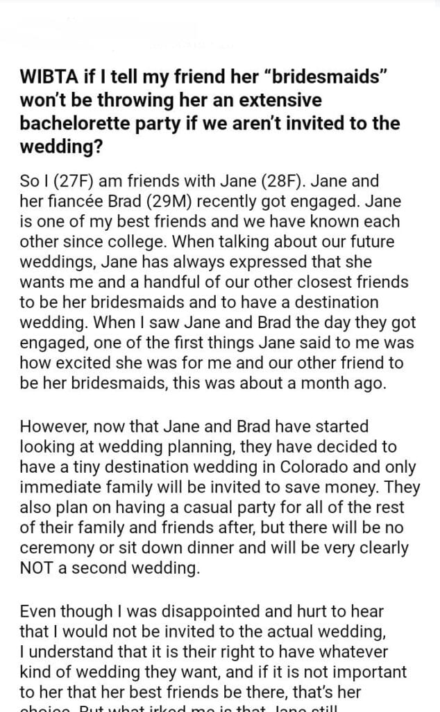 WIBTA if I tell my friend her “bridesmaids” won’t her an bachelorette party
