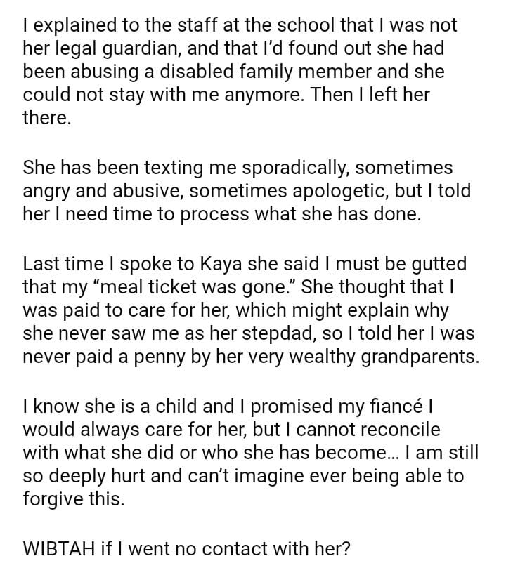 WIBTAH for going no contact with my (17f) stepdaughter?